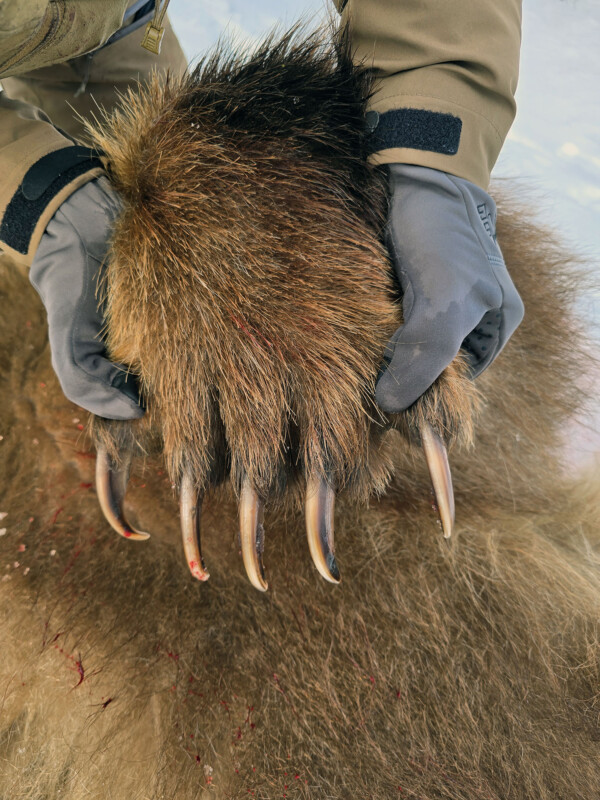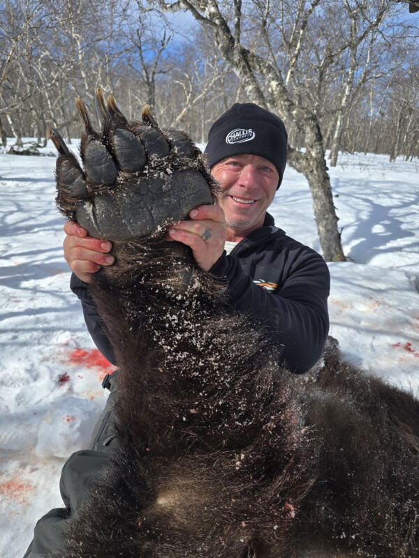 Target species: Coastal brown bears (Ursus arctos), with no legal limit on the number taken—hunters often harvest multiple mature boars. Methods involve locating fresh tracks, glassing from afar, and strategic stalks adapted to snowy conditions. Guides, from the local Itelmen team, are highly experienced and culturally attuned to the area. Bowhunting is available with advance planning, and one specific date accommodates archery hunters. Rifle options include personal firearms (with permits) or rentals (Sako/Blazer-style bolt actions in .300 Win Mag, .338 Win Mag, or .375 H&H; 100% of 2025 hunters used rentals). Ammo is provided with rentals.