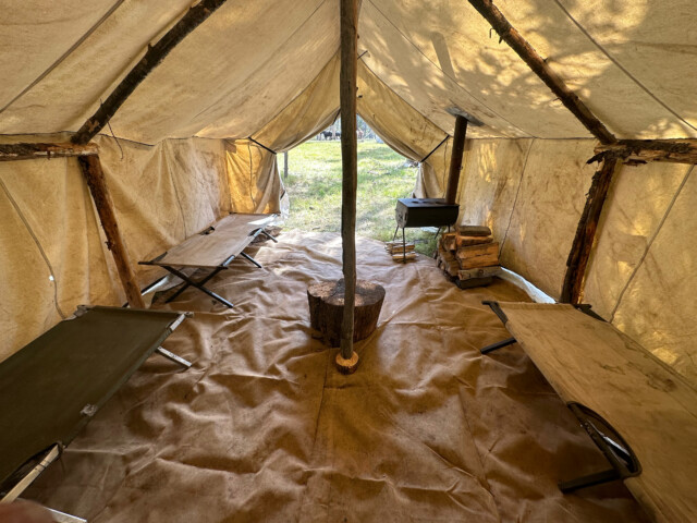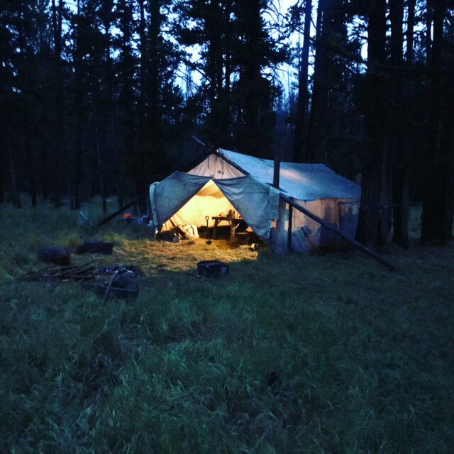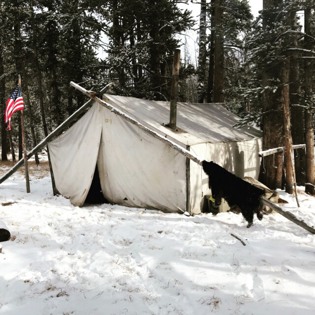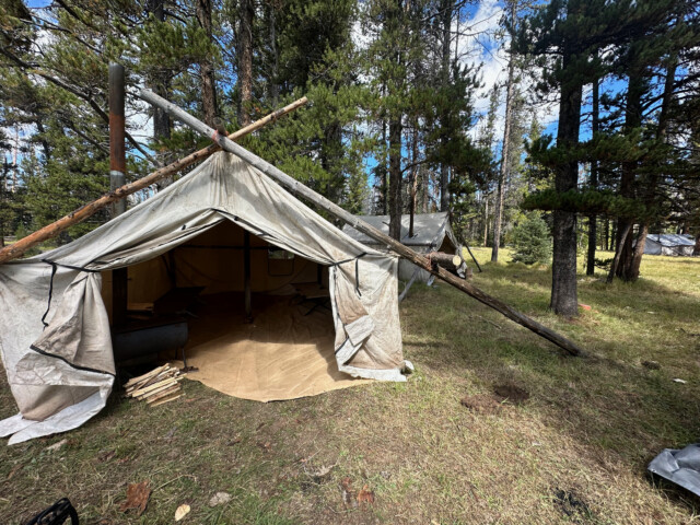 This is a backcountry hunt with wall tents with floors, cots, and wood stoves. There is also a shower tent available.
