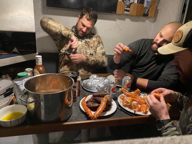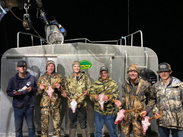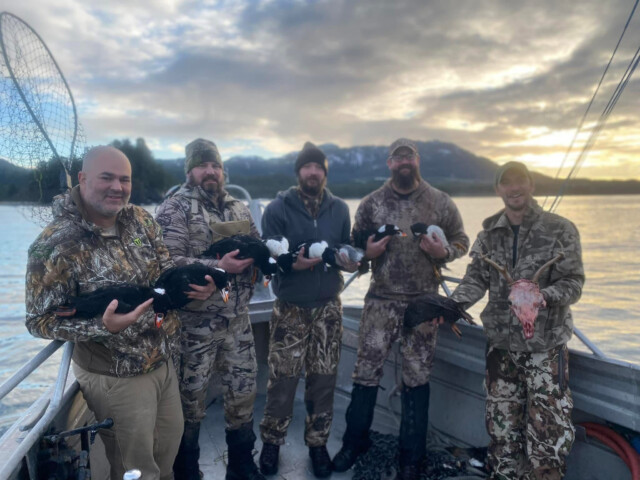 Eat like kings with meals consisting of fresh caught Copper River Chinook and Sockeye Salmon, Pacific Halibut, Tanner and Golden King crab, along with moose and deer steaks, roasts and burgers.  Sleep in a comfortable bunk in a bunkroom each night with access to a hot shower daily.  Dry your gear at night and start each day ready to chase trophy Sitka blacktail deer or six foot plus coastal black bears.  Change it up for a day and pursue some of the 17 different species of ducks available in the area.  Your group will have five full days of hunting while the crew takes care of things on board and gets you safely to and from your hunting areas daily.